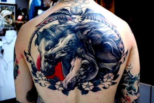 经典帅气的背部马纹身