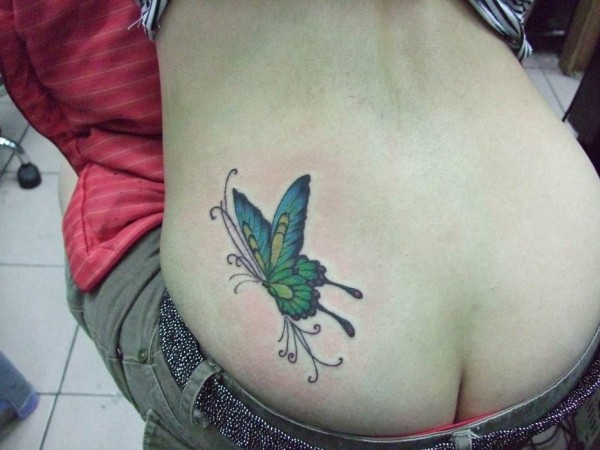 分享一款腰部时尚性感的蝶恋花纹身图案_腰部纹身图案大全_纹身图吧