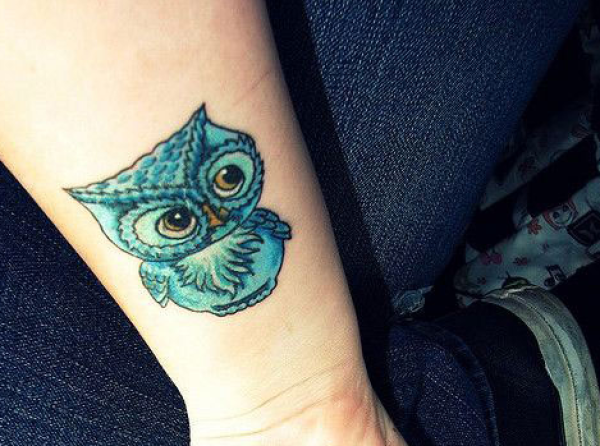 手腕上可爱的猫头鹰纹身