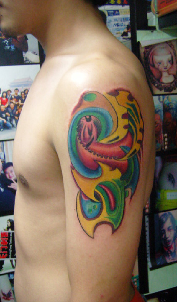 手臂一款彩色蘑菇纹身图案_臂部纹身图案大全_纹身图吧