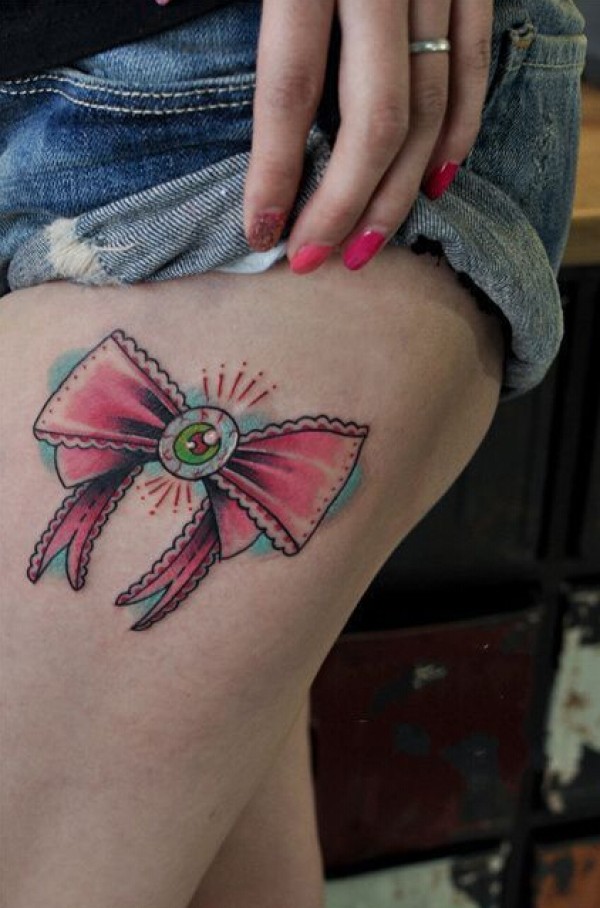 创意蝴蝶节眼大腿纹身图案