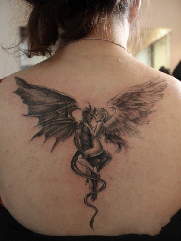 天使与魔鬼背部纹身