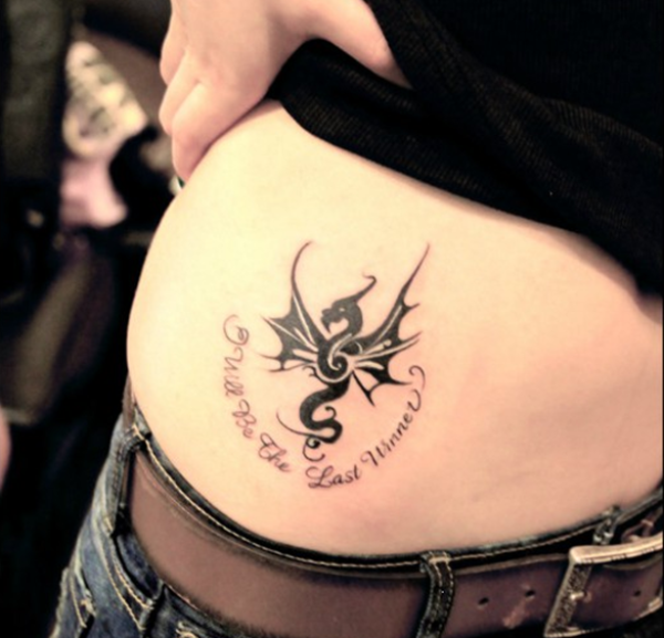 腰部图腾翼龙纹身