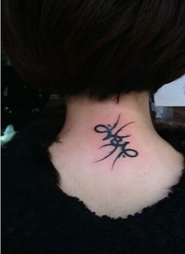 后颈部纹身小图--9张女生脖子后颈处的简约纹身图案