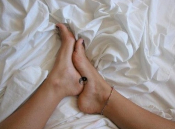 女生脚部黑白八卦个性纹身
