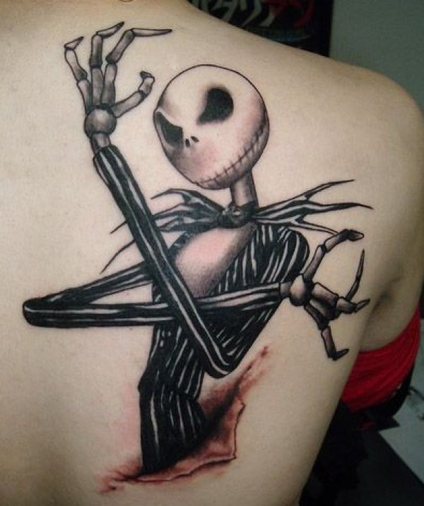 女生背部时尚骷髅先生纹身