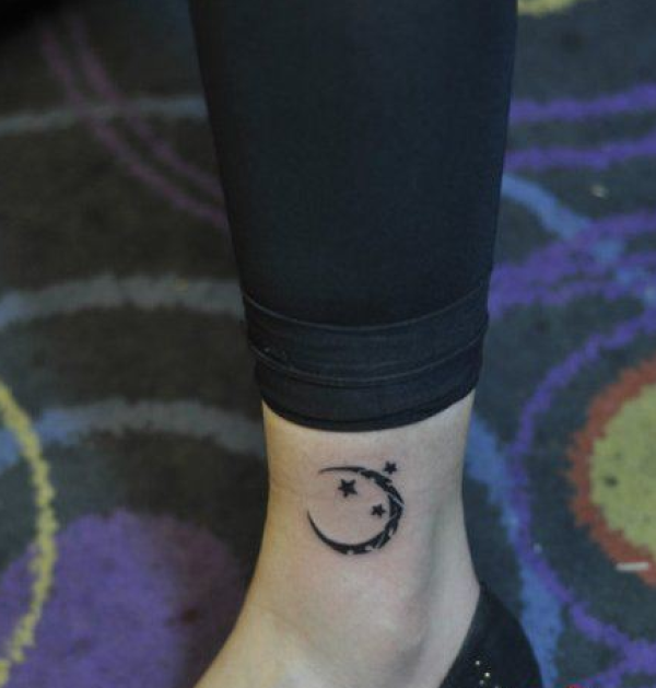 女生腿腕处唯美时尚的月亮星星纹身图案
