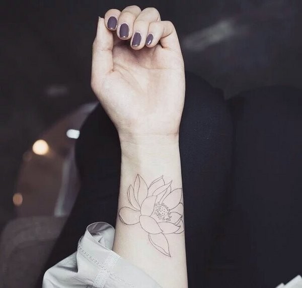 手腕简单漂亮的线条莲花纹身图案