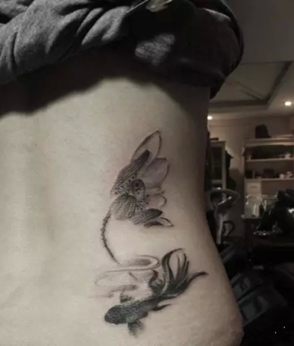 分享一款腰部时尚性感的蝶恋花纹身图案_腰部纹身图案大全_纹身图吧