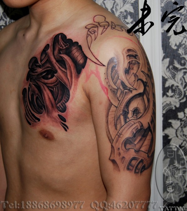 宁波纹身 宁波司徒纹身 3D半甲我恶魔是饥饿么_3D纹身图案大全_纹身图吧