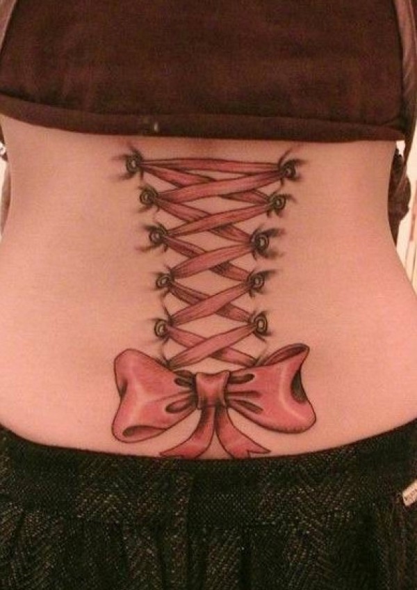 女人腰部3D蝴蝶结刺青_3D纹身图案大全_纹身图吧