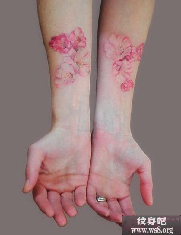 女生手臂盛开桃花3D纹身图案_3D纹身图案大全_纹身图吧