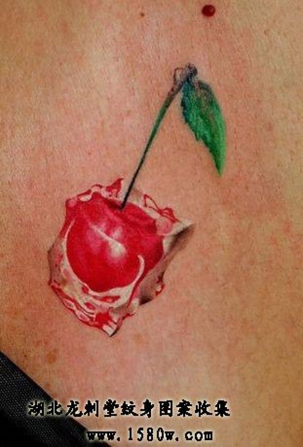 3D冰冻樱桃纹身图案_3D纹身图案大全_纹身图吧