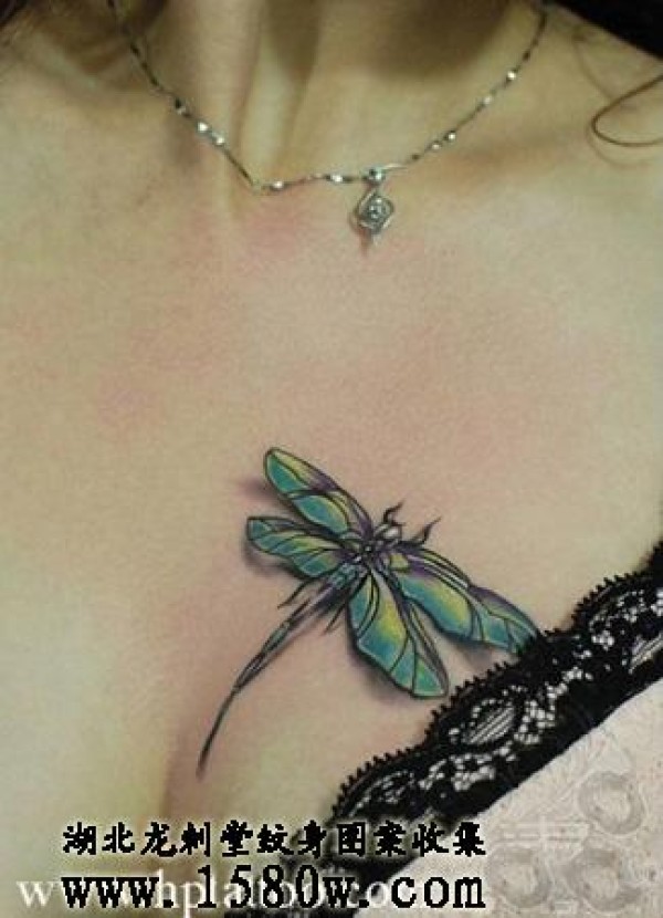 胸部纹身3D蜻蜓纹身_3D纹身图案大全_纹身图吧