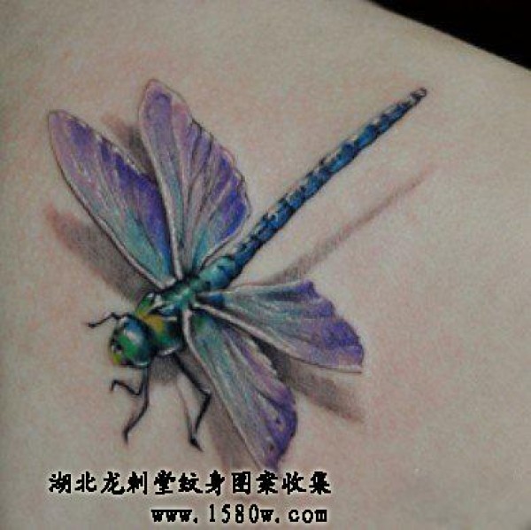 肩部3D蜻蜓纹身肩部纹身_3D纹身图案大全_纹身图吧