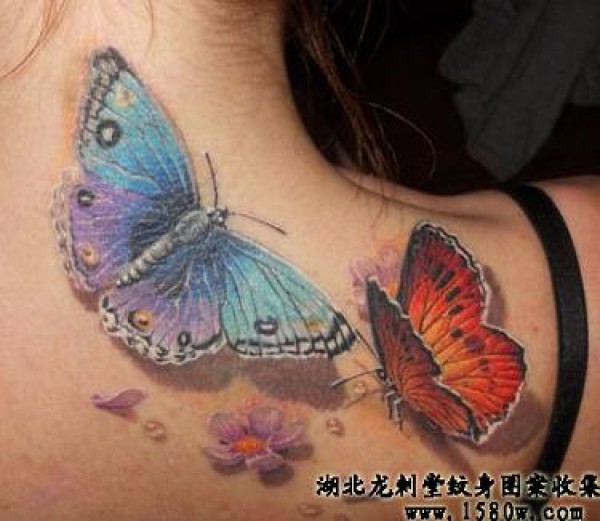 3D蝴蝶纹身肩部纹身3D纹身_3D纹身图案大全_纹身图吧