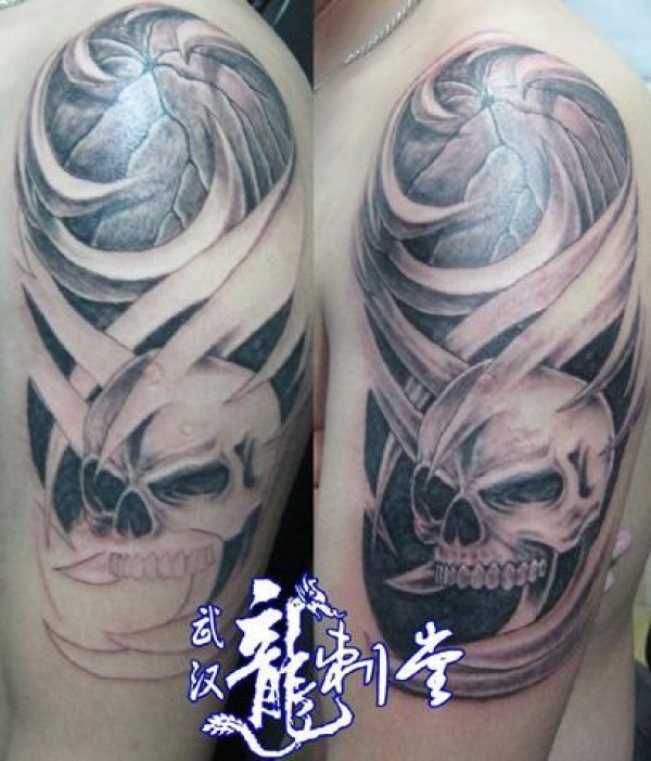 大臂3D骷髅纹身 武汉最好的纹身店_3D纹身图案大全_纹身图吧