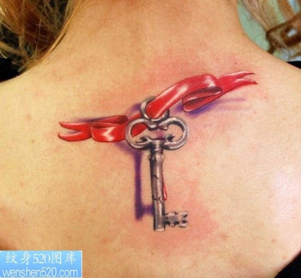丝带钥匙3D纹身图案图案_3D纹身图案大全_纹身图吧