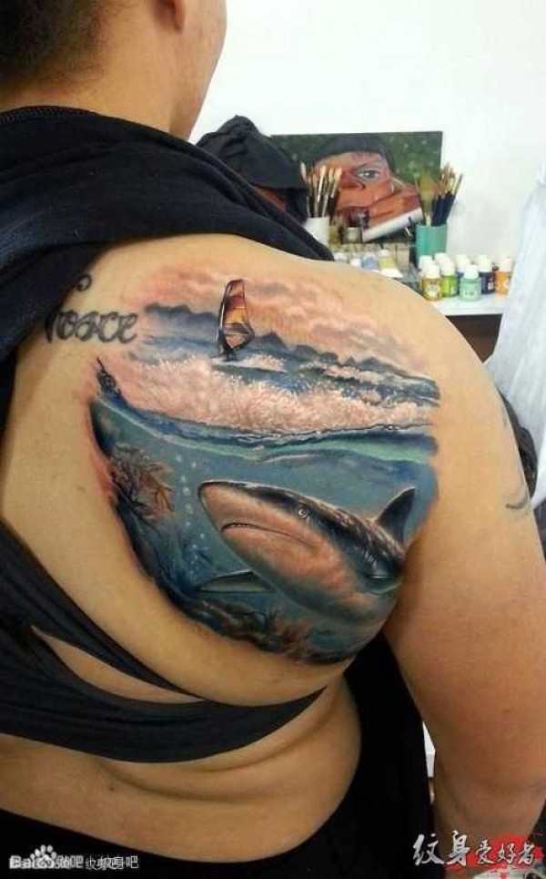 3D艺术仿真鲨鱼纹身_3D纹身图案大全_纹身图吧