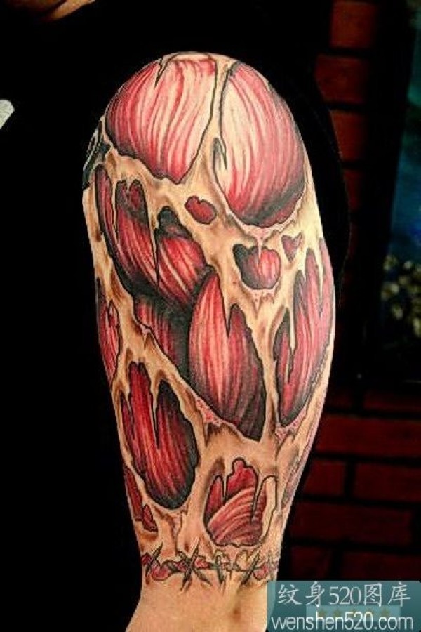 手臂胳膊上的3d肌肉纹身图_3D纹身图案大全_纹身图吧