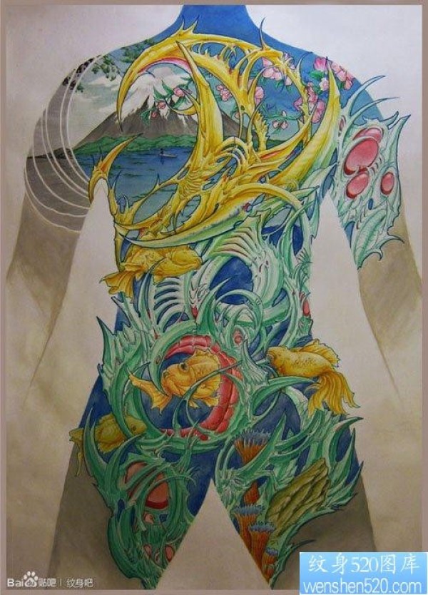 一幅超帅经典的满背3D纹身手稿_3D纹身图案大全_纹身图吧