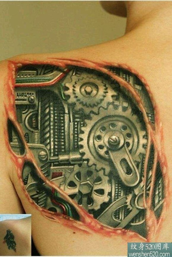 后背逼真的3d机械齿轮图_3D纹身图案大全_纹身图吧