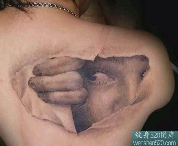 后背上的3d窥视纹身_3D纹身图案大全_纹身图吧