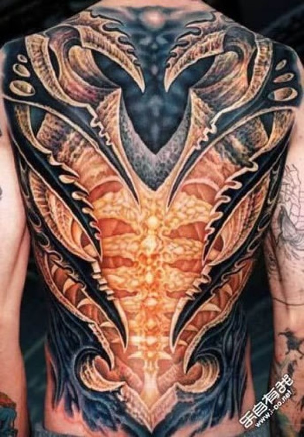后背立体感很好的3D纹身图案似乎是暗黑底蕴黄金_3D纹身图案大全_纹身图吧