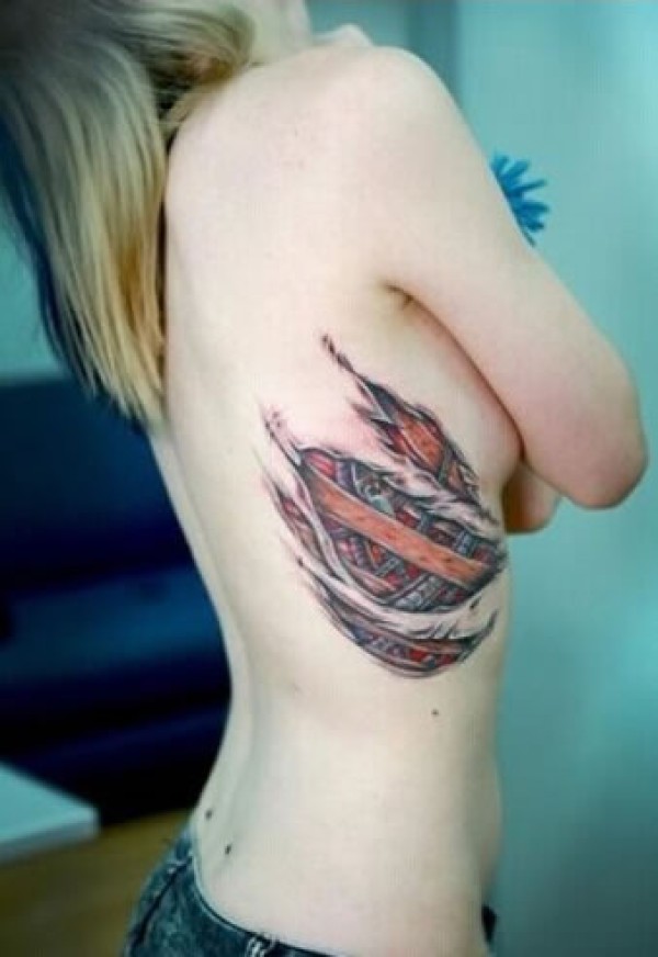 胸部3D伤口纹身图案满目疮痍的伤疤纹身图案_3D纹身图案大全_纹身图吧