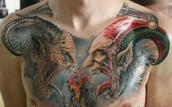 胸部相对的犄角恶魔纹身图案欧美3D元素纹身,我_3D纹身图案大全_纹身图吧