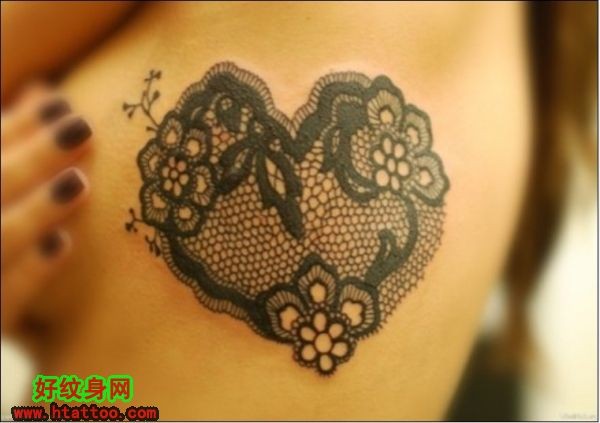 女生腰部心形蕾丝3D性感纹身_3D纹身图案大全_纹身图吧