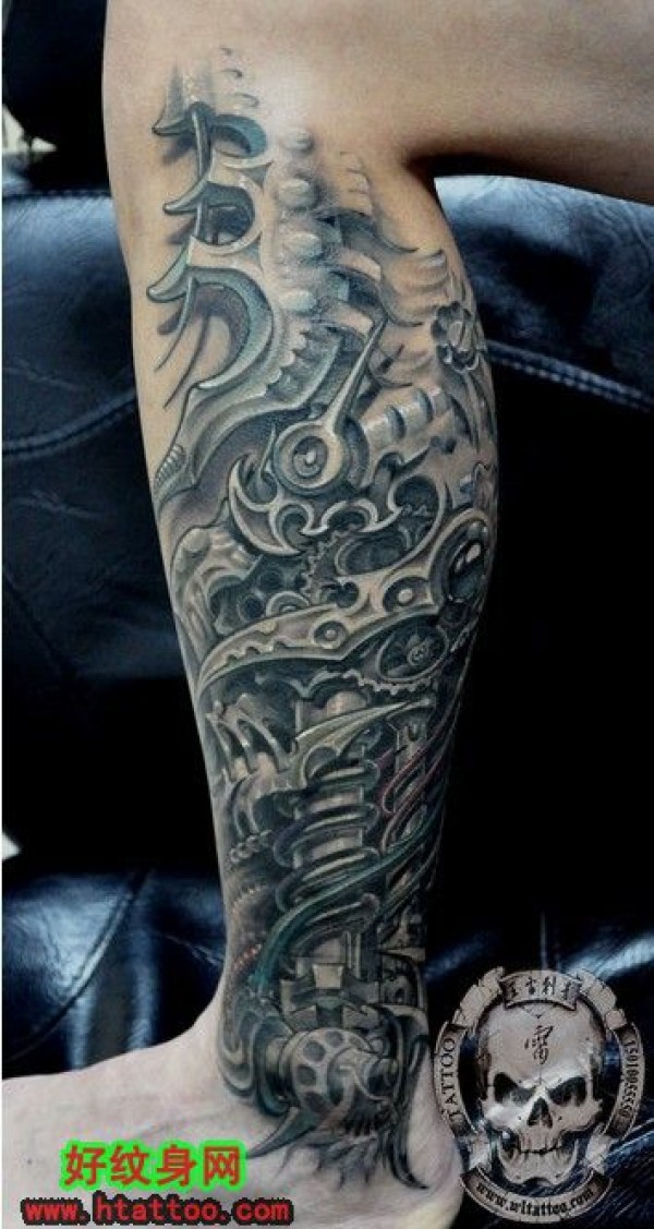我看到过最帅的3D机械小腿纹身作品_3D纹身图案大全_纹身图吧