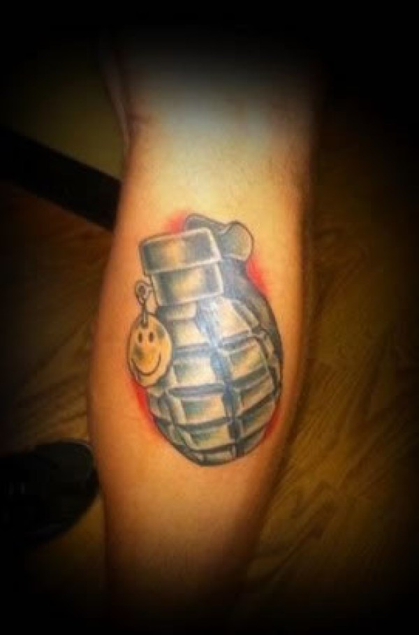 腿部真实感很强的手榴弹纹身图腿部3D手榴弹图案_3D纹身图案大全_纹身图吧