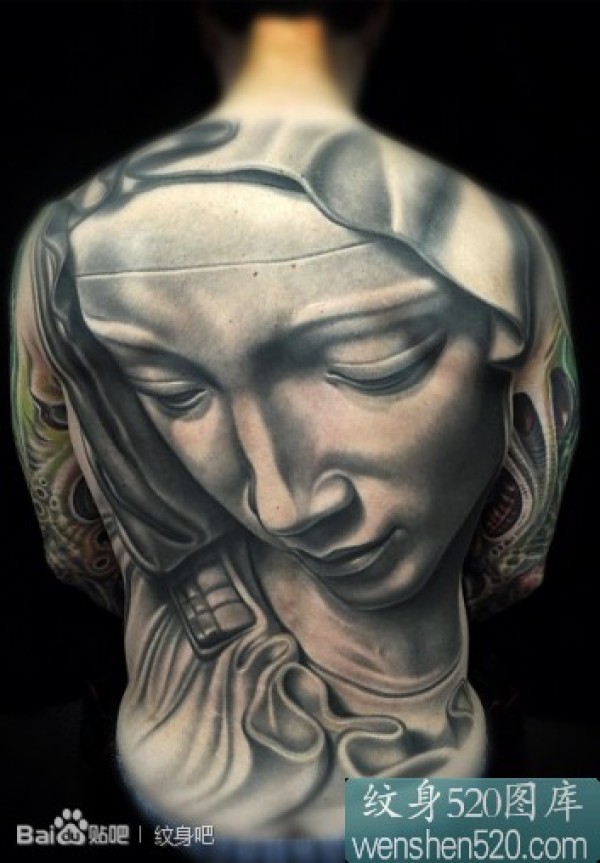 满后背女性3d肖像纹身作品_3D纹身图案大全_纹身图吧