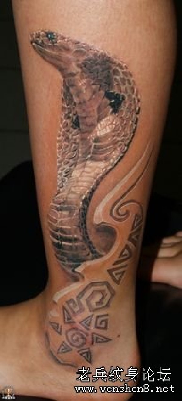 腿部3D蛇纹身图案_3D纹身图案大全_纹身图吧