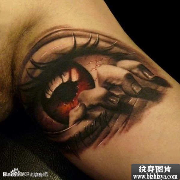 黑色逼真的3d胳膊上大眼睛纹身作品_3D纹身图案大全_纹身图吧