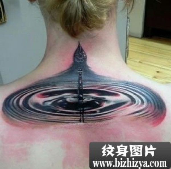 后背个性水滴3d刺青作品_3D纹身图案大全_纹身图吧