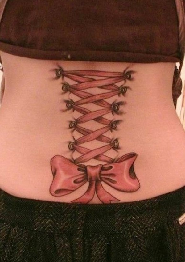 女人腰部3D蝴蝶结刺青_3D纹身图案大全_纹身图吧