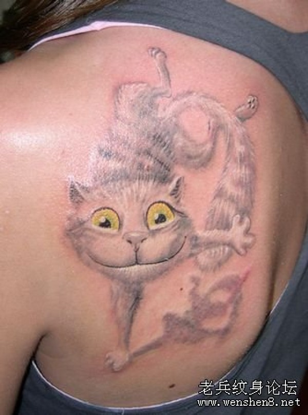 一款肩部3D彩色卡通猫咪纹身图案纹身图片_3D纹身图案大全_纹身图吧