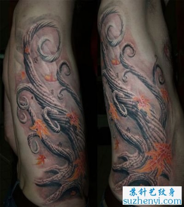 欧美纹身图案3D树枫叶纹身_3D纹身图案大全_纹身图吧