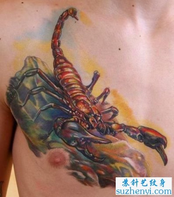 胸部3D彩色蝎子纹身_3D纹身图案大全_纹身图吧