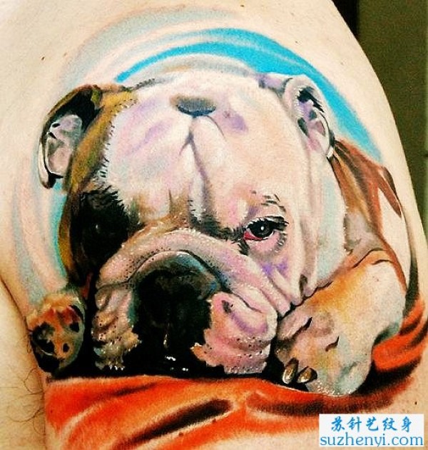 手臂3D彩色哈巴狗纹身_3D纹身图案大全_纹身图吧