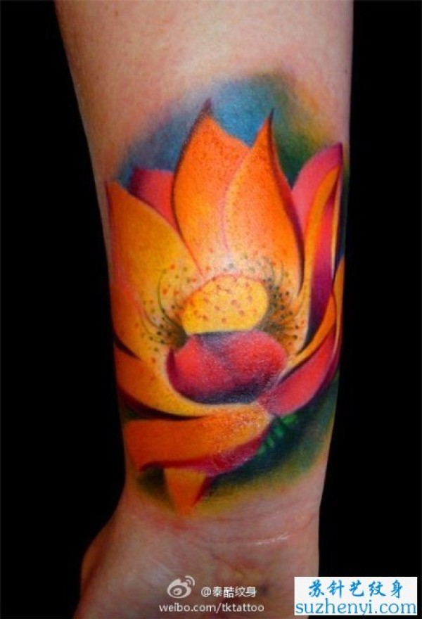 手臂彩色3D莲花纹身_3D纹身图案大全_纹身图吧