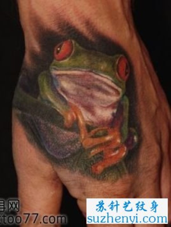 手背3D彩色青蛙纹身_3D纹身图案大全_纹身图吧