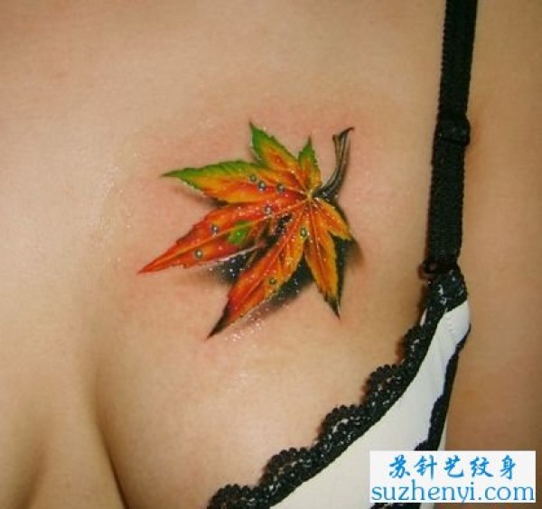 胸部3D彩色枫叶纹身_3D纹身图案大全_纹身图吧