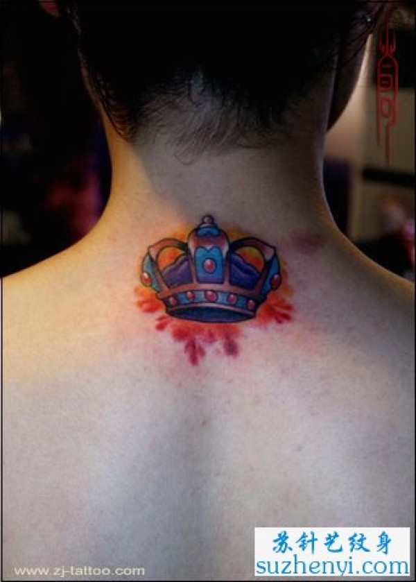 3D重彩颈部皇冠纹身_3D纹身图案大全_纹身图吧