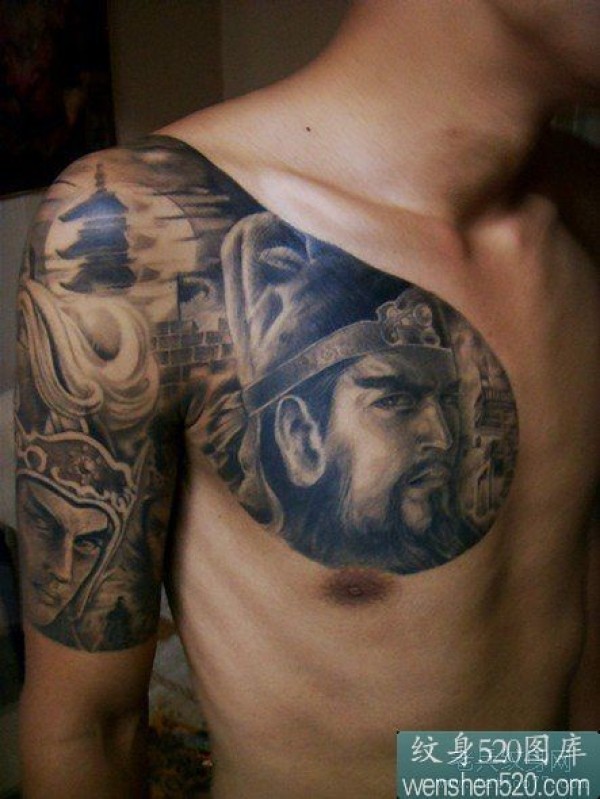 时尚超帅的一款半甲关公赵云纹身图案_半甲纹身图案大全_纹身图吧