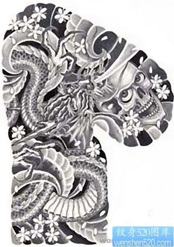 半甲龙骷髅纹身图片作品_半甲纹身图案大全_纹身图吧