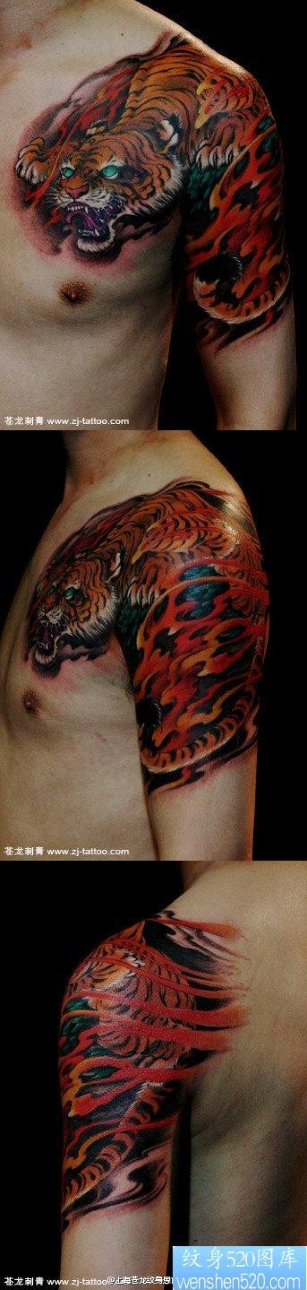 一幅超酷漂亮的半甲披肩老虎纹身图片图片_半甲纹身图案大全_纹身图吧