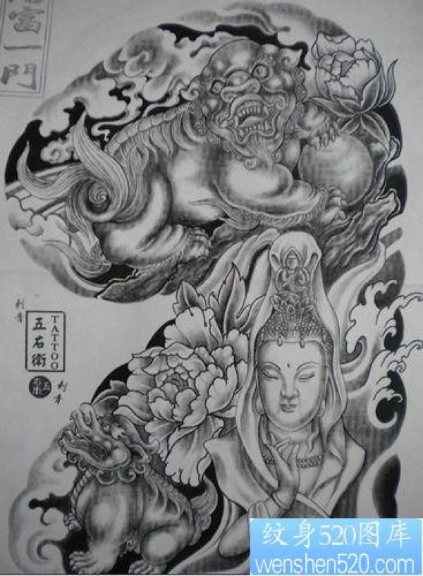 半甲纹身图片半甲观音神兽唐狮纹身图片纹身_半甲纹身图案大全_纹身图吧